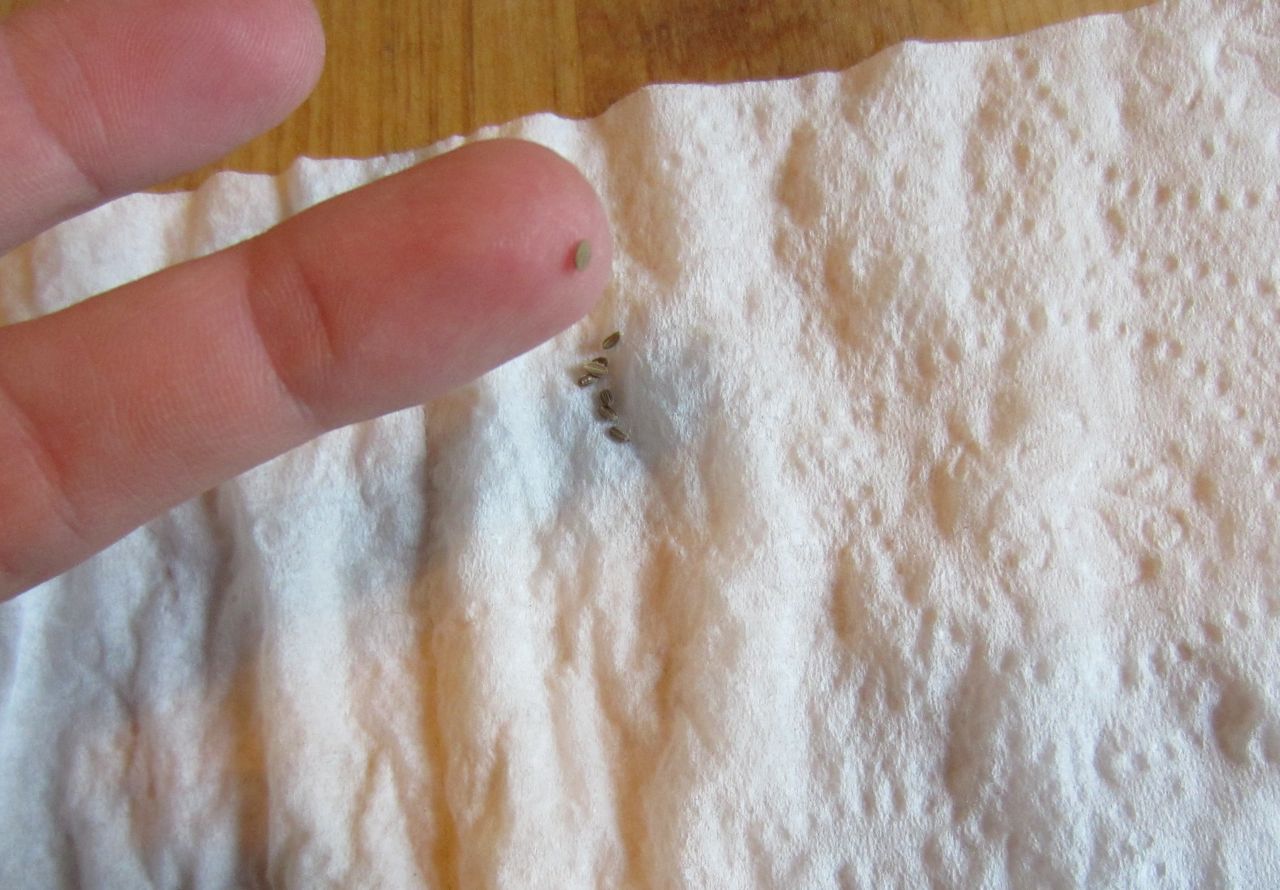 Lay out your TP (directly on the soil is best) and spritz lightly with water. This helps the seeds to adhere and also starts breaking down the paper. You want to use TP instead of paper towels or napkins because TP is designed to dissolve in water.